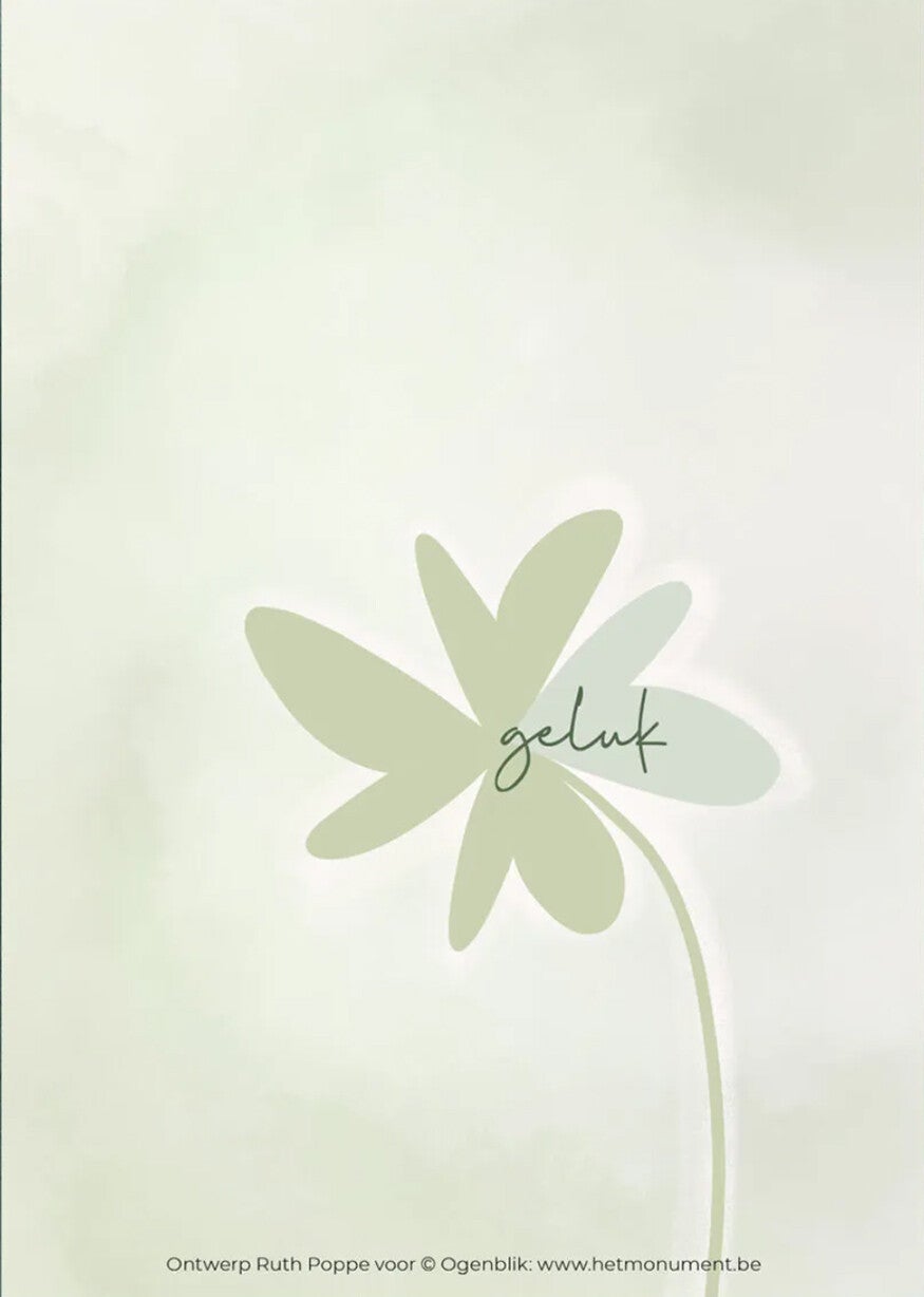 Ook de achterkant heeft dezelfde afbeelding, maar dan in een vervaagde versie en alleen de tekst "geluk".
