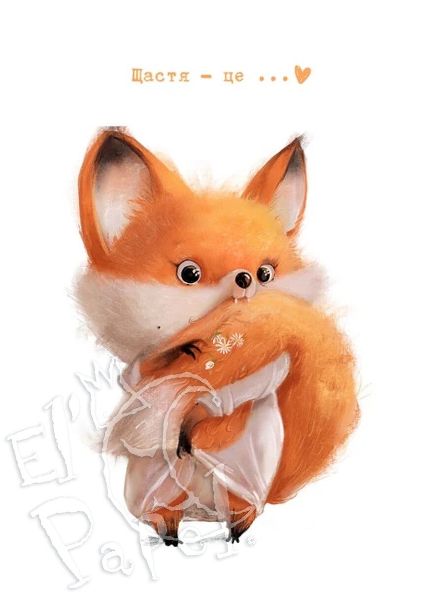 In dit geval een illustratie van een vosje met een prachtig dikke staart.