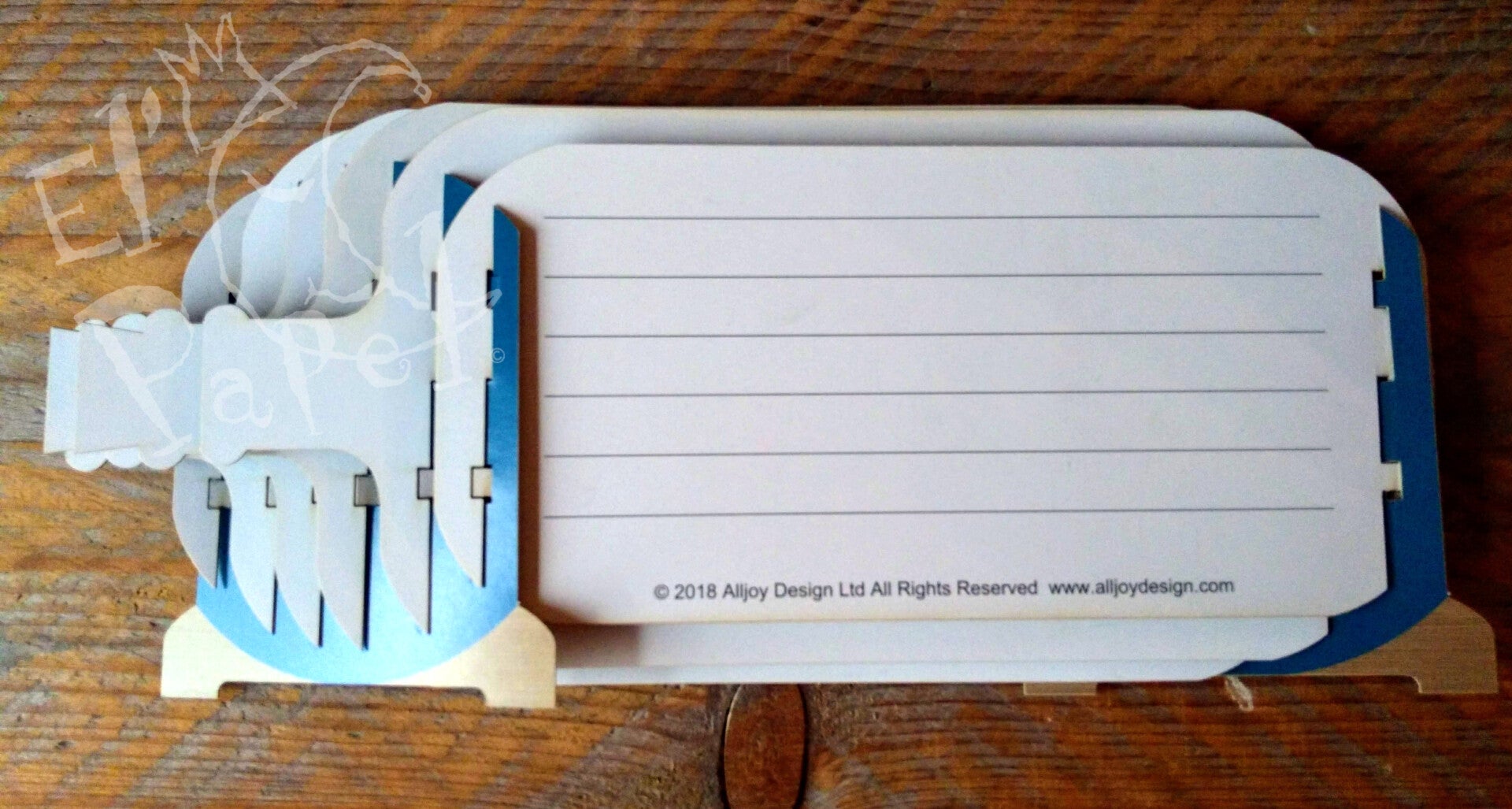 De kaart heeft uitgevouwen 6 lagen en wordt dan een kijkdoos in de vorm van een fles.