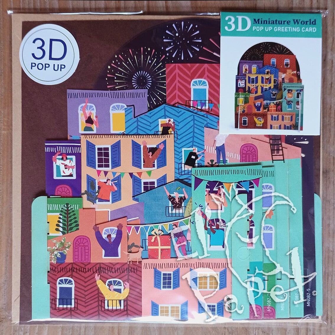 Fantastische 3D 'Miniature World' Pop Up kaart voor kinderen en volwassenen met een kleurrijke thema voorstelling.