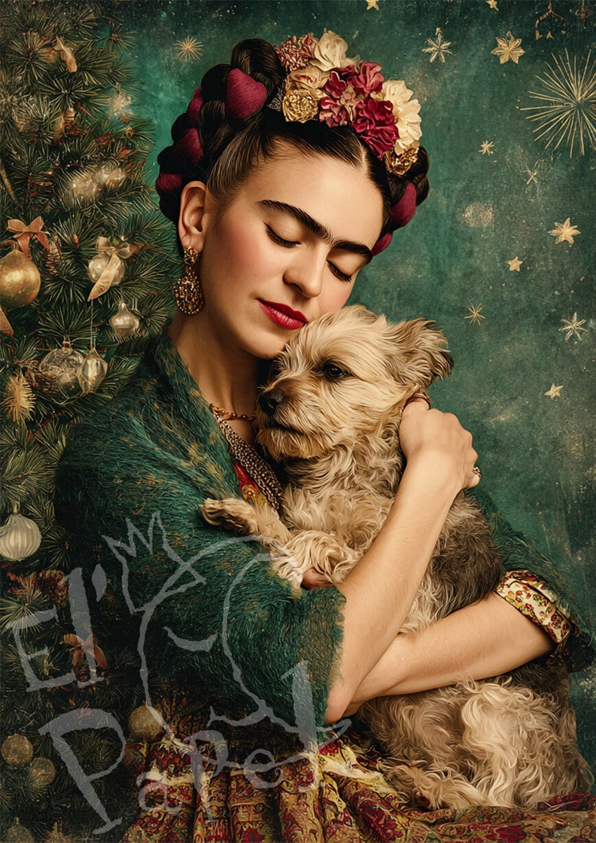 Kerstkaart 'Frida Kahlo - Kersthond'