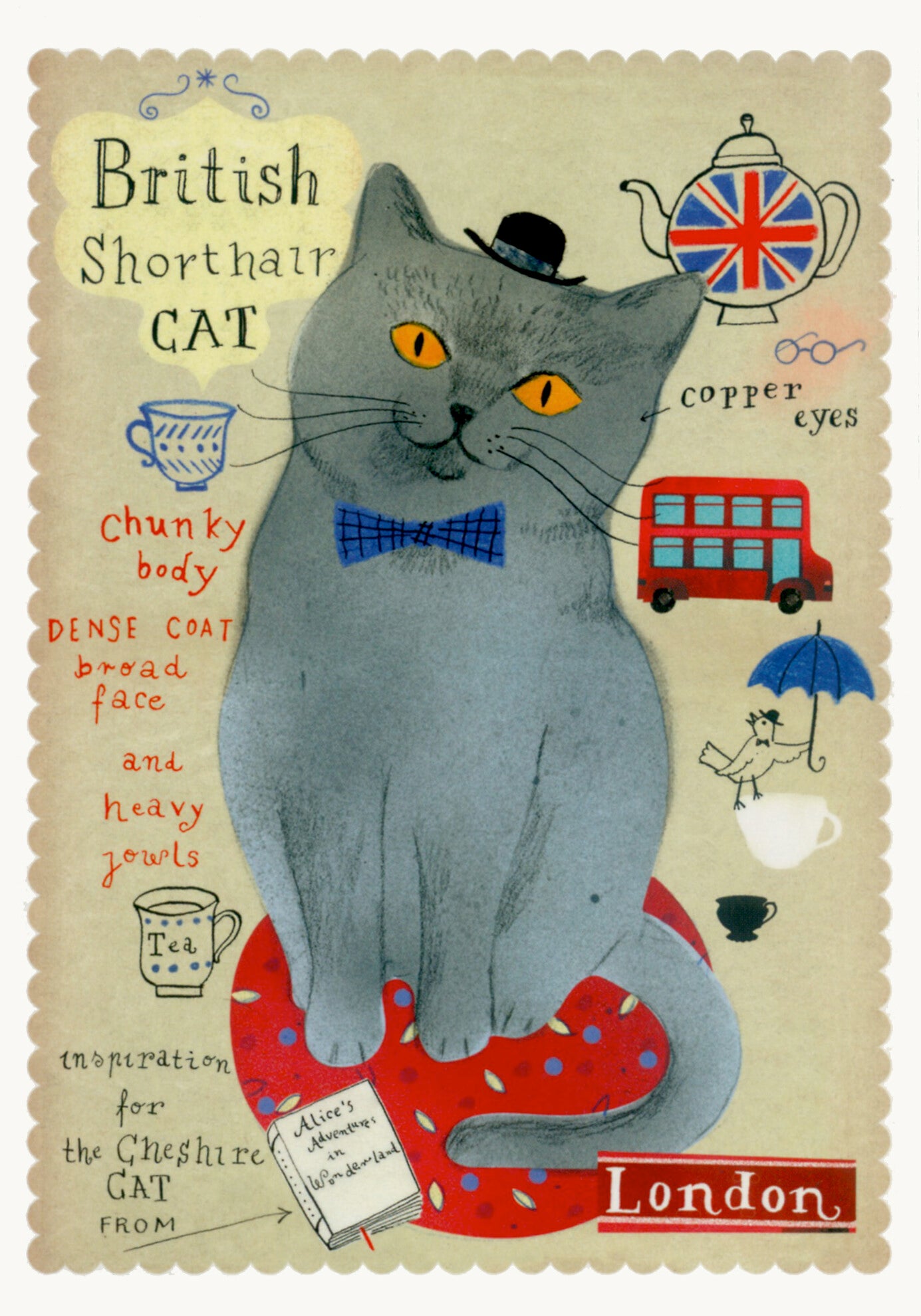Mooie illustratiekaart uit een serie van 18 verschillende kattenrassen met hun bijzondere kenmerken (afkomst).