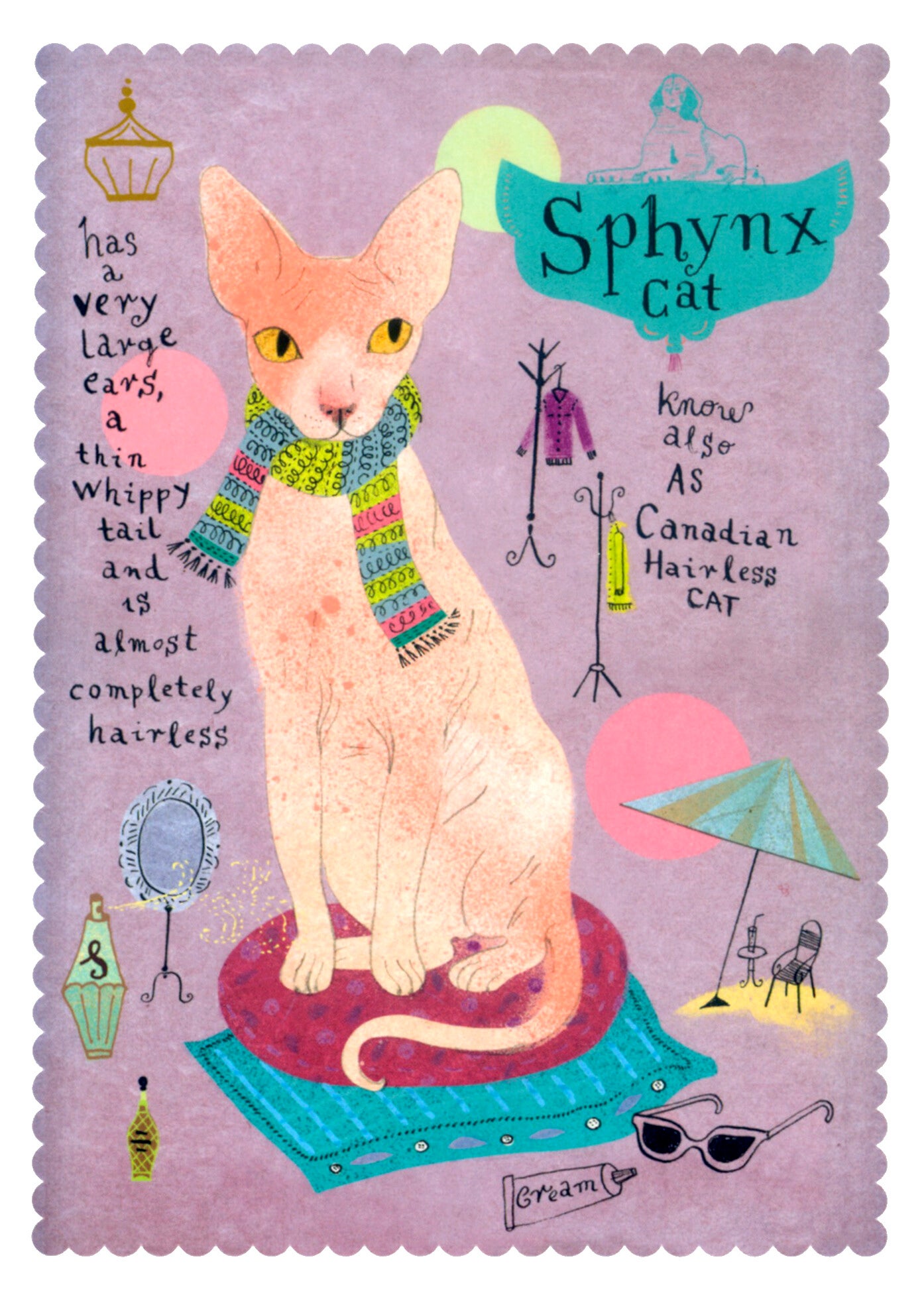Mooie illustratiekaart uit een serie van 18 verschillende kattenrassen met hun bijzondere kenmerken (afkomst). Goede kwaliteit afdruk op mooi stevig papier! Illustratie: Marianna Sztyma. De kaart is mat afgewerkt en is 12 x 17 cm. (zonder envelop!)