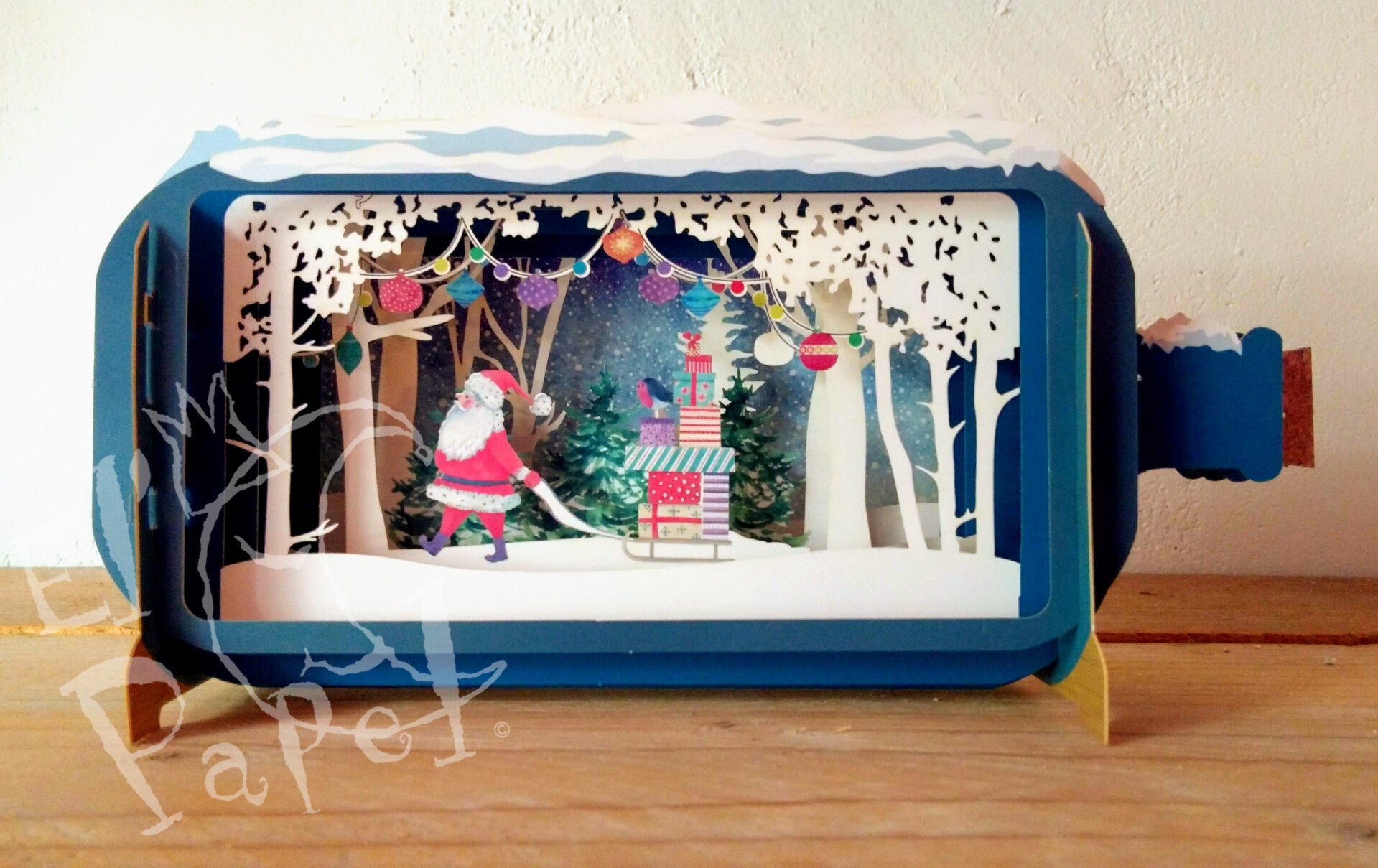 De kaart heeft uitgevouwen 6 lagen en wordt dan een kijkdoos in de vorm van een fles.