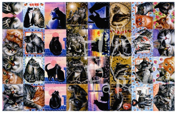 Leuke Irina Garmashova met katten paren stickers, 32 stickers op een velletje, de stickers zelf zijn 2,4 x 3 cm.