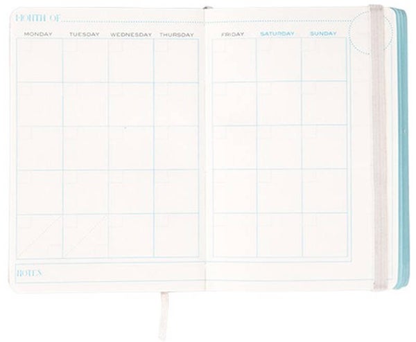 De Pocket Planner heeft bladgoud versieringen op de cover en een elastische sluiting. Een dateless planner met 13 maand-paginas en 57 week paginas.
