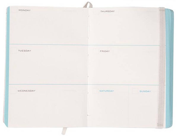 De Pocket Planner heeft bladgoud versieringen op de cover en een elastische sluiting. Een dateless planner met 13 maand-paginas en 57 week paginas.