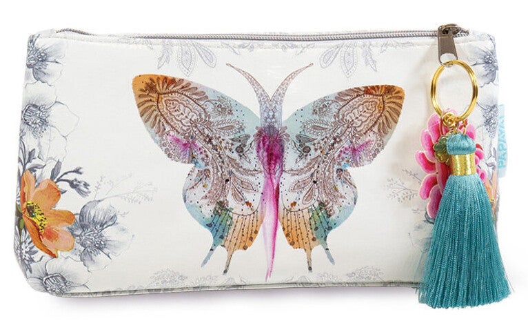 Prachtige Papaya Art 'accessory pouch' toilettas, van een duurzame, soepele en hoog kwalitatief oliedoek met uniek Papaya design.