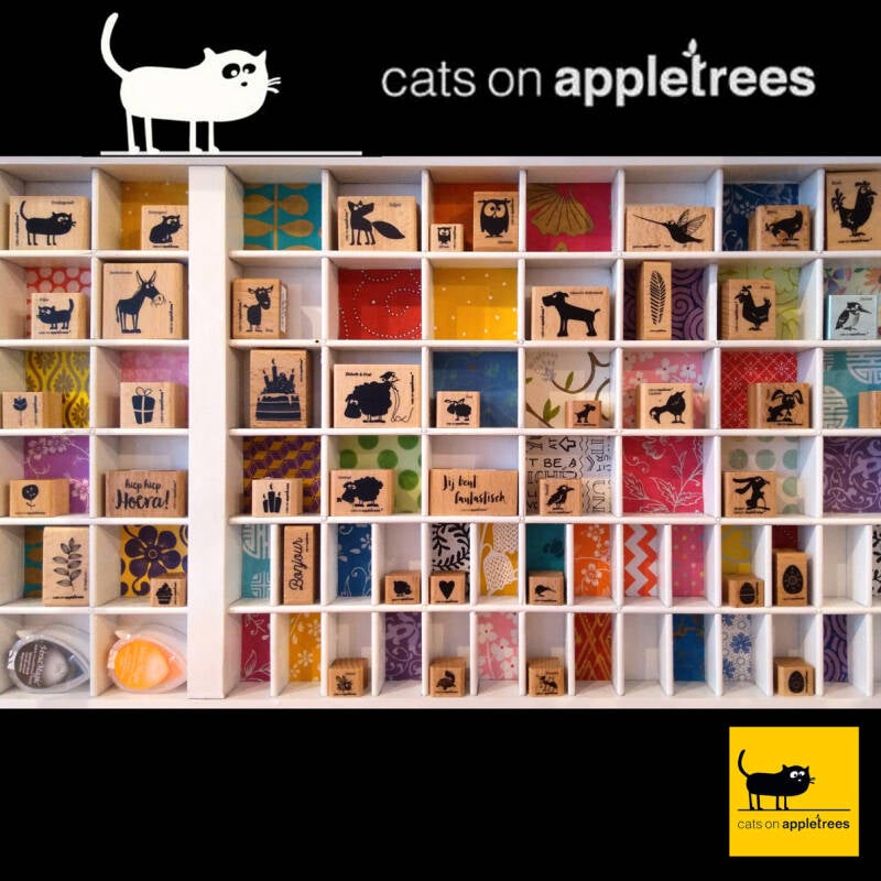 Je vind hieronder stempels van Cats on Appletrees, Herzensart en El' Papel handgesneden stempels,